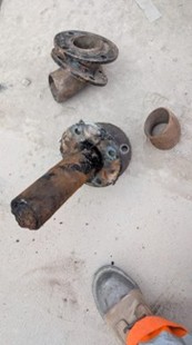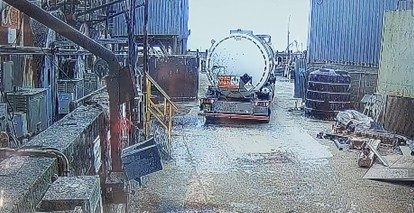 The first image below captures the moment the pipe ruptured and began to spray the tanker and the ground, and the second shows the section of the pipe where the blockage occurred.