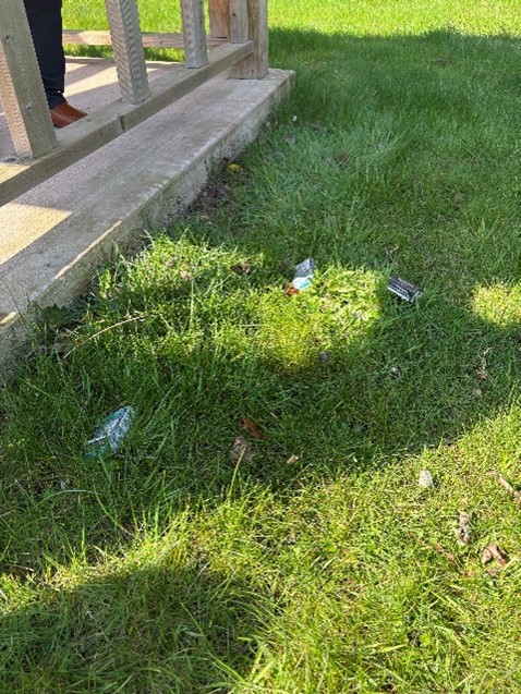 The incident where the bin was alight was caused by paper cups that had been placed within the bin, the unit overflowing and it had not been emptied recently. Looking around the area, there were discarded cigarette packets and other flammable materials present as well.