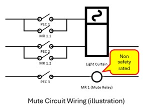 • Force guided contact relays should be used in muting circuits