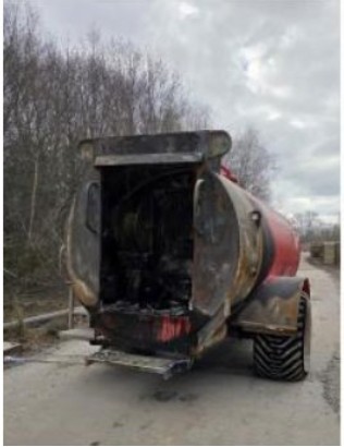 The first image below shows the bowser on fire and the operator, the second the damage to the bowser.