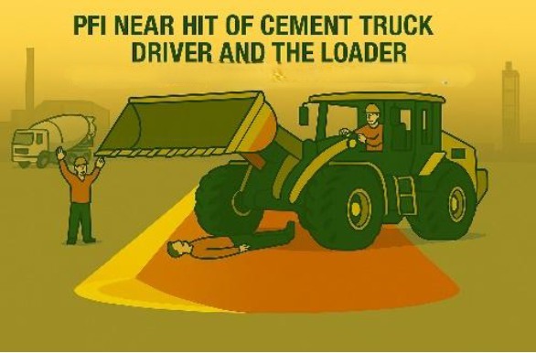 Fatal 2 - MOBILE PLANT - A cement truck driver, who was outside his vehicle, narrowly avoids being struck by a front end loader.