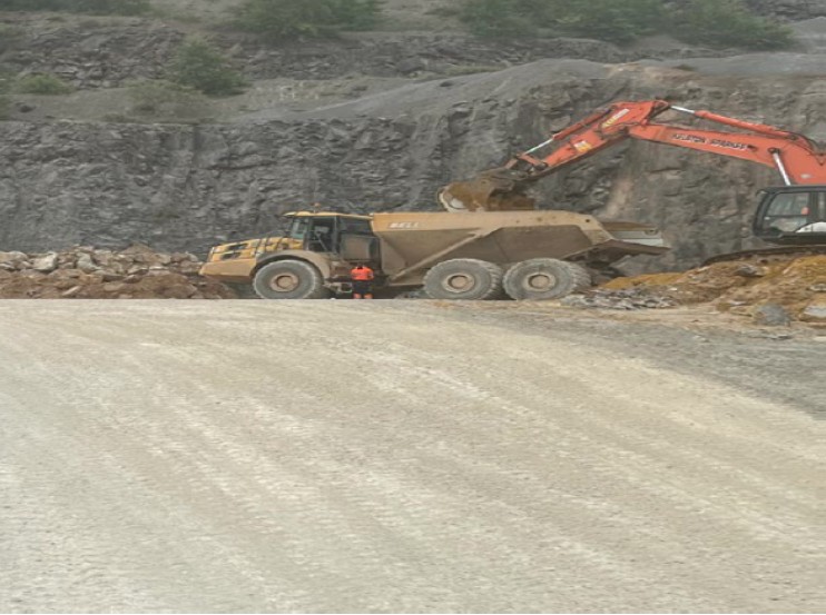 An operator exited an articulated dump truck in an unsafe area with no hard hat, gloves, or safety glasses. He stood between the cab and body of the vehicle below the skip to urinate whilst it was still being loaded by an excavator. This was reported to site management by a member of staff using the Near Hit QR code, it was not picked up until much later in the day.