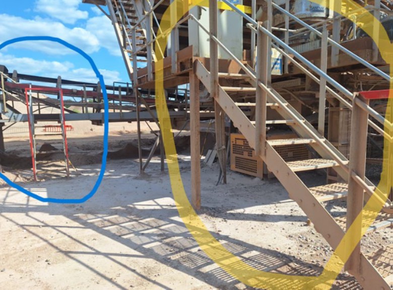 In the images below, the contractor’s access to work area is in blue, access steps to the crusher are shown in yellow.